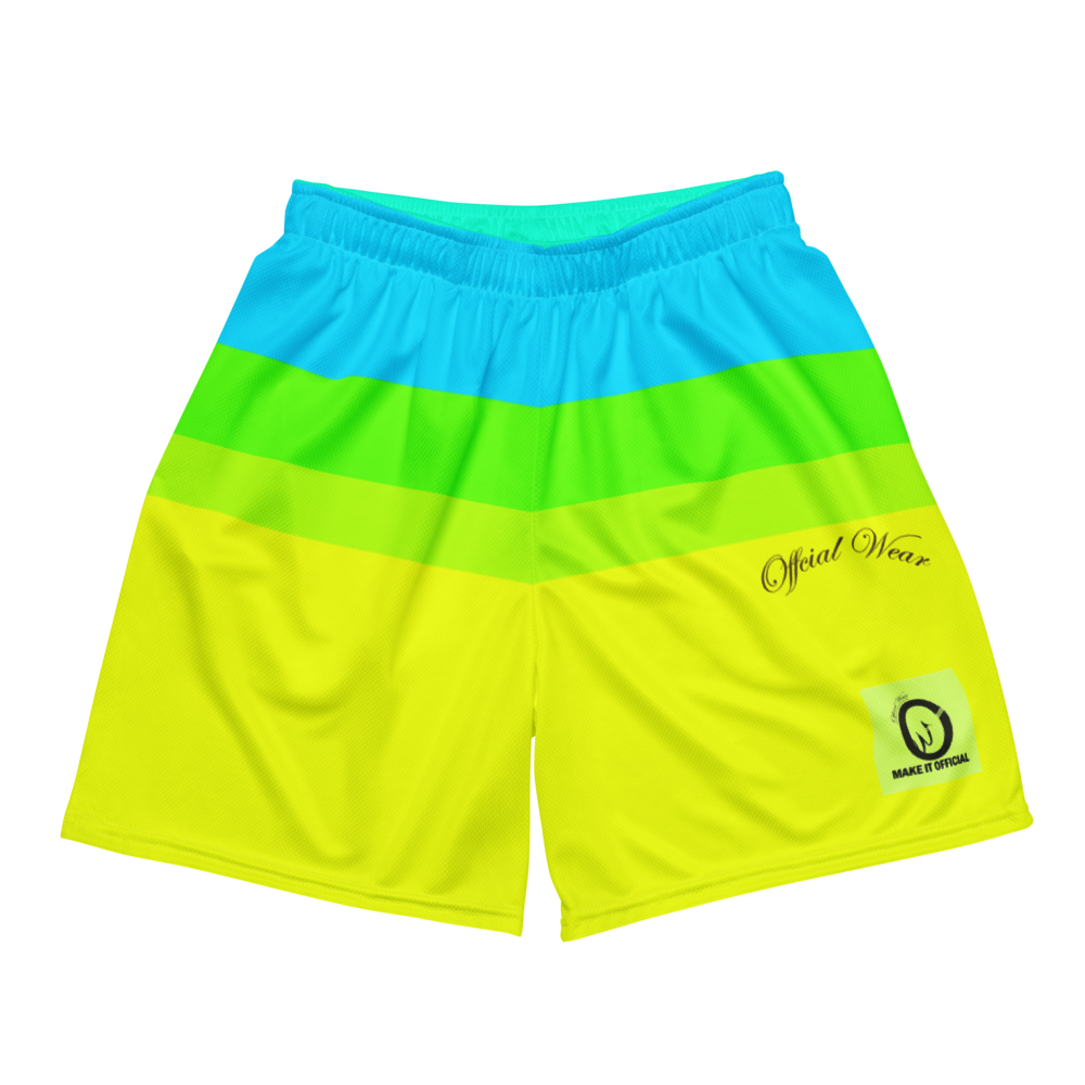 Official Wear 'Neon Striped mesh shorts' are unisex. Mesh shorts are the ultimate fusion of practicality and style. These shorts are designed for both high-performance sports and cool streetwear
