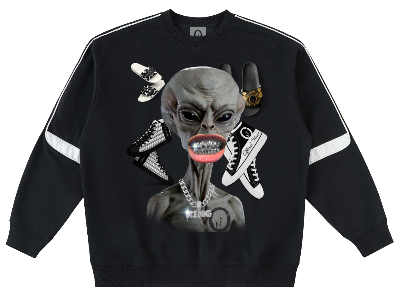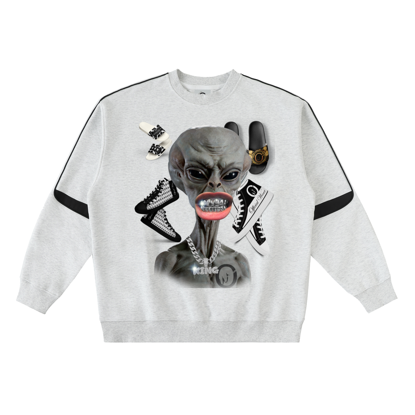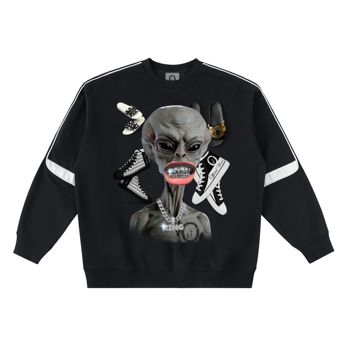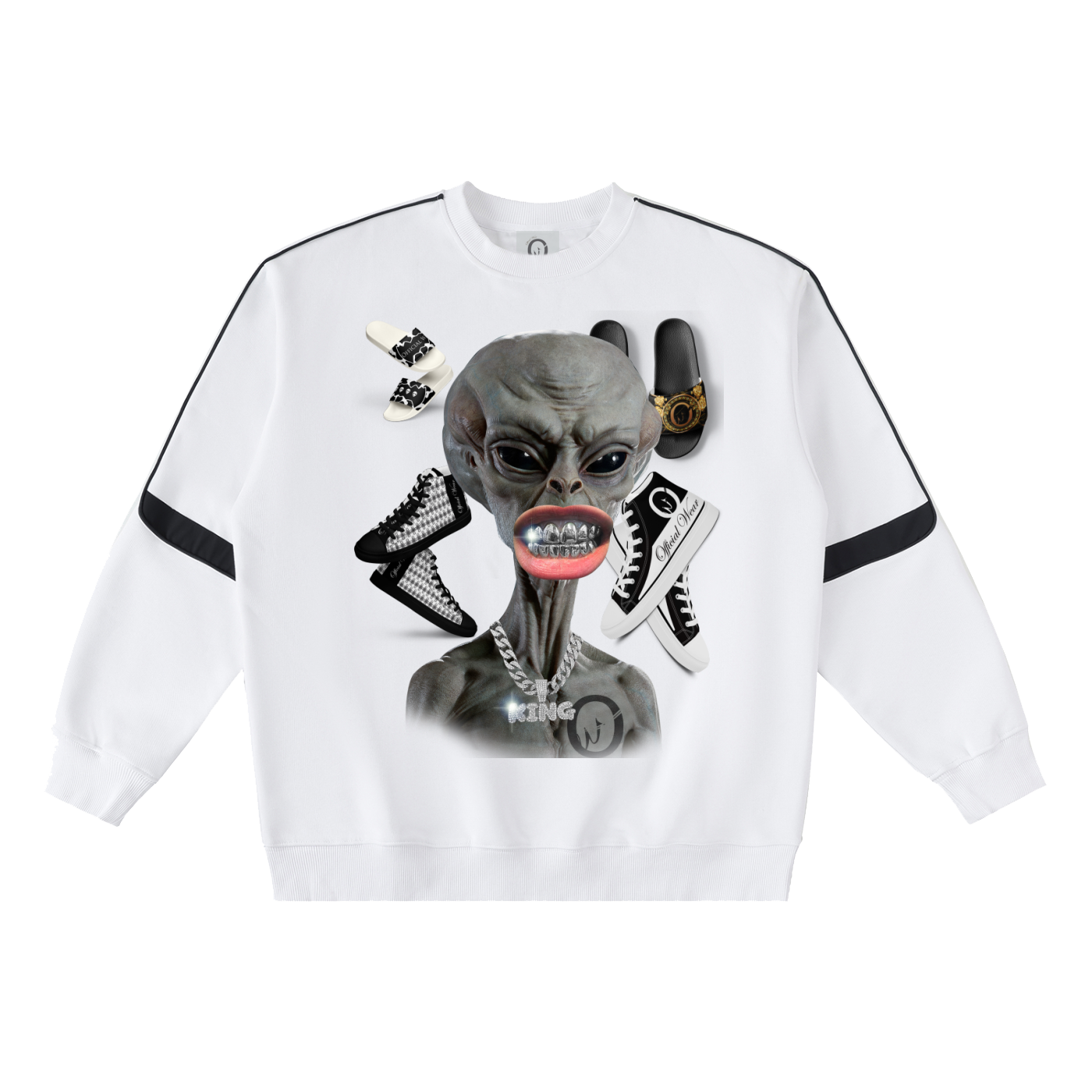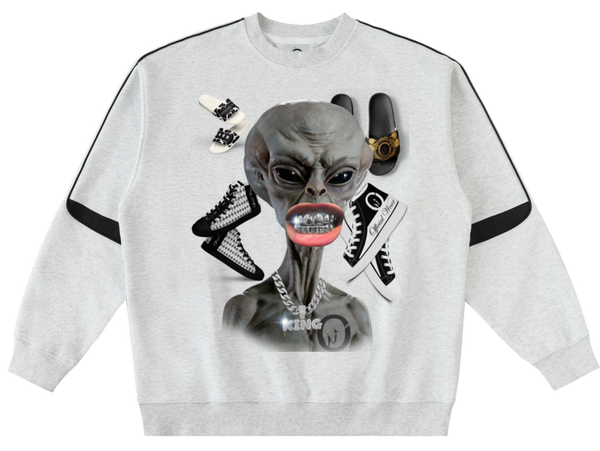 Official Wear 'Alien and Sneakers' Oversized Crewneck Taped Sweatshirt One-side print included.