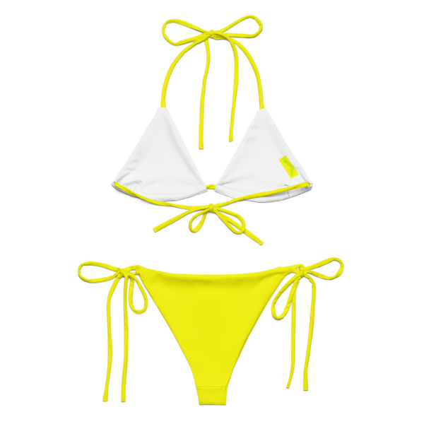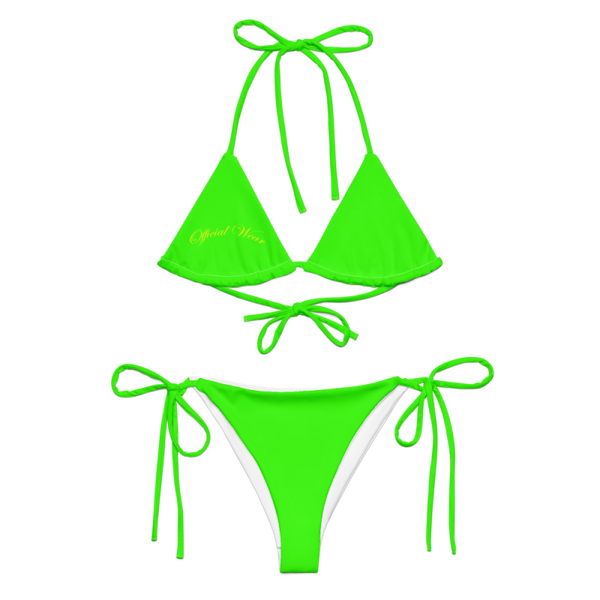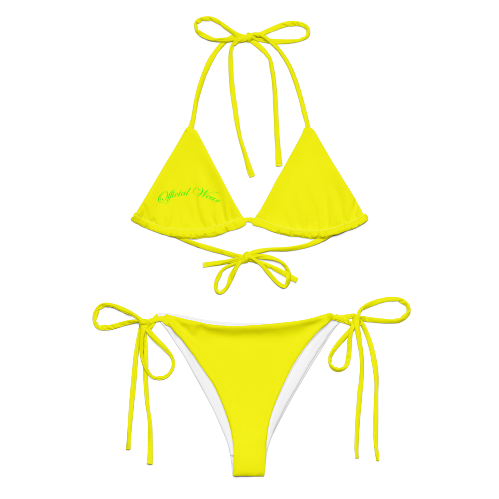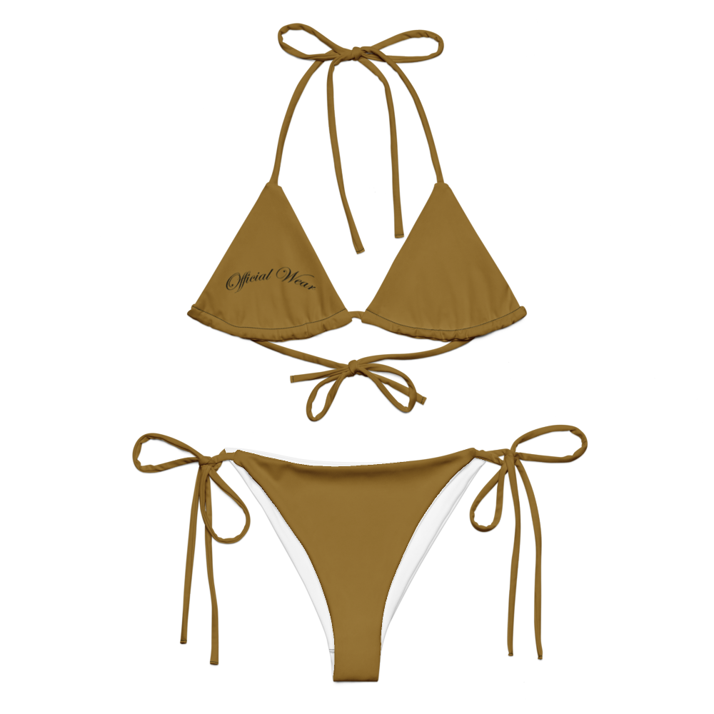 Official Wear 'Plain Jane' String Bikini is made from soft and stretchy recycled polyester. This eco-friendly set is a staple in swimwear and is great for pairing with other outfits. The combination of comfort and versatility makes this set a must-have for any swimwear collection.