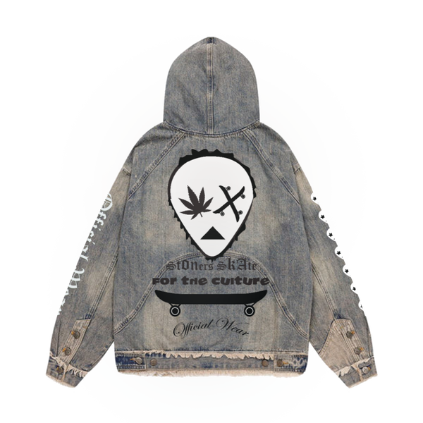 Official Wear 'Stoners Skate' Unisex Washed Distressed Fuzzy Denim Hoodie.